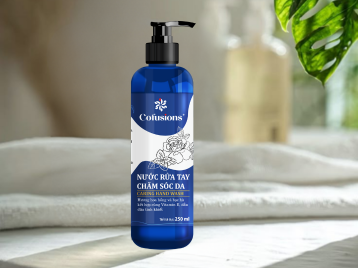 Nước rửa tay chăm sóc da Cofusions hương hoa hồng được sản xuất từ dầu dừa tinh khiết công nghệ ly tâm cao cấp, giữ nguyên hàm lượng axit béo tự nhiên giúp dưỡng ẩm và bảo vệ da. Dầu dừa sau khi chiết xuất được kết hợp với vitamin E, tinh dầu hoa hồng và bạc hà, tạo nên công thức dịu nhẹ, giúp làm sạch da tay mà không gây khô ráp. Hỗn hợp sau đó được phối trộn, đồng hóa, chiết rót và đóng chai theo quy trình khép kín, đảm bảo chất lượng an toàn.