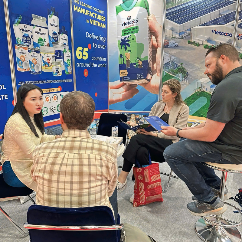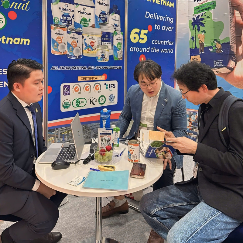 Tại sự kiện lần này, Dừa Lương Quới mang đến danh mục sản phẩm đa dạng dưới thương hiệu Vietcoco, được sản xuất từ nguồn nguyên liệu dừa hữu cơ tại "Xứ Dừa" của Việt Nam. Khách tham quan có thể trải nghiệm trực tiếp các dòng sản phẩm chủ lực bao gồm: